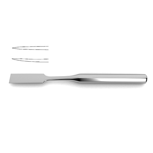 9-1/2″ (24.0 cm)?Hibbs Osteotome is made for use in neurosurgical procedures that require scraping or chiseling through bone. This osteotome features a thick handle for ease in gripping and maneuverability. The handle narrows into a slim neck which widens out again into a chisel type blade. Additionally the blade features a slight curvature increasing its ability to be used to strip or scrape away layers of bone and tissue. This instrument is available in ten sizes ranging from 6.0 mm to 38.0 mm and in either a curved or straight profile allowing it to be useful in a variety of patient scenarios and surgeon preferences.